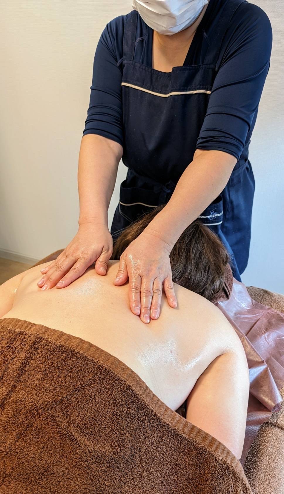 施術の最後には手技マッサージで筋肉をほぐし、リラックス効果を高めます。筋膜リリースや鍼灸で得た効果を定着させ、身体の柔軟性維持をサポートします。